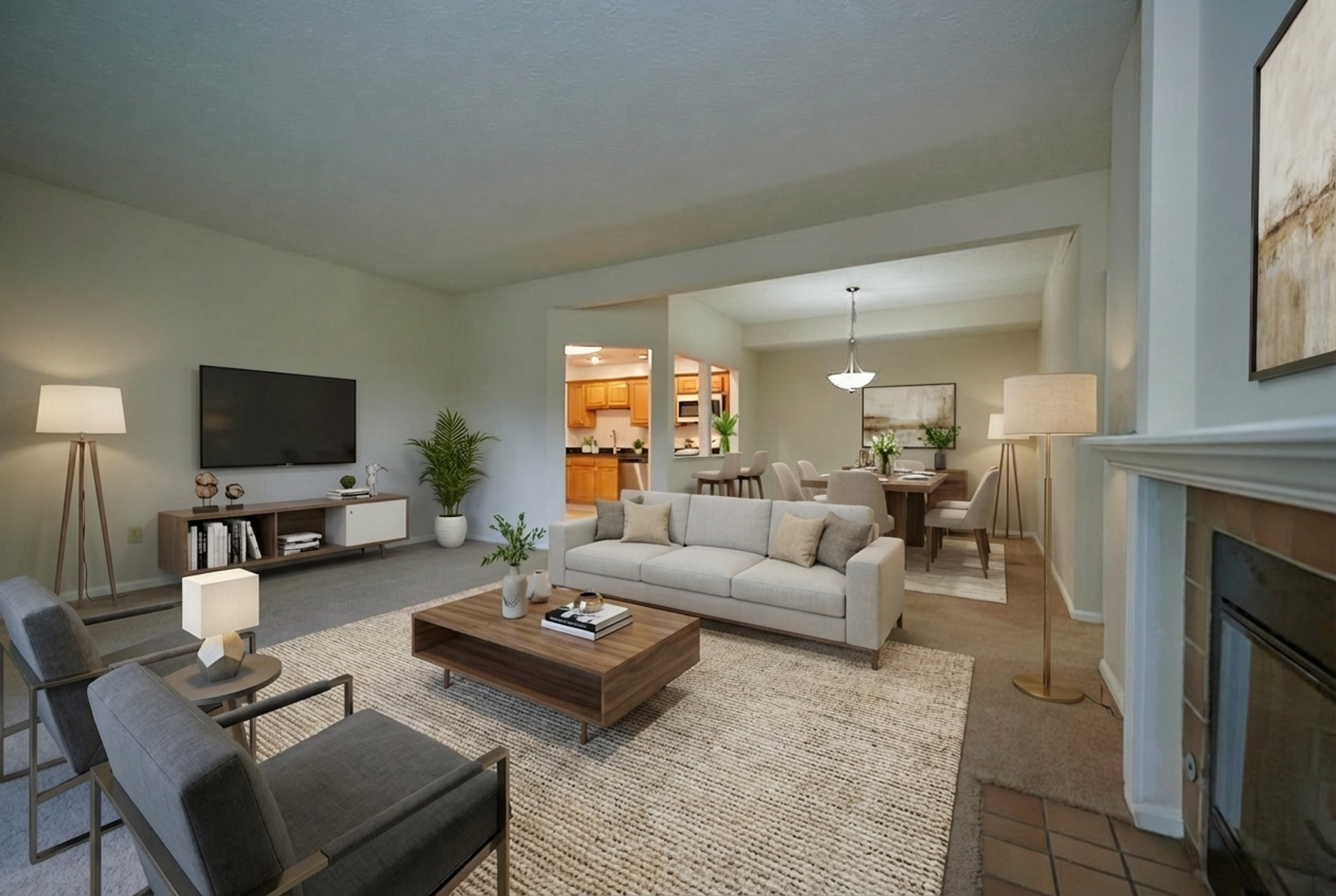 Experience luxury living at Grand Bay Apartments & Townhomes! Our spacious 2-bedroom and 3-bedroom apartment homes offer exceptional square footage for ultimate comfort. Enjoy a fully equipped eat-in kitchen with granite counters, plus an elegant dining room ideal for entertaining. Each apartment home features a cozy gas log fireplace, creating the perfect ambiance for relaxation.
