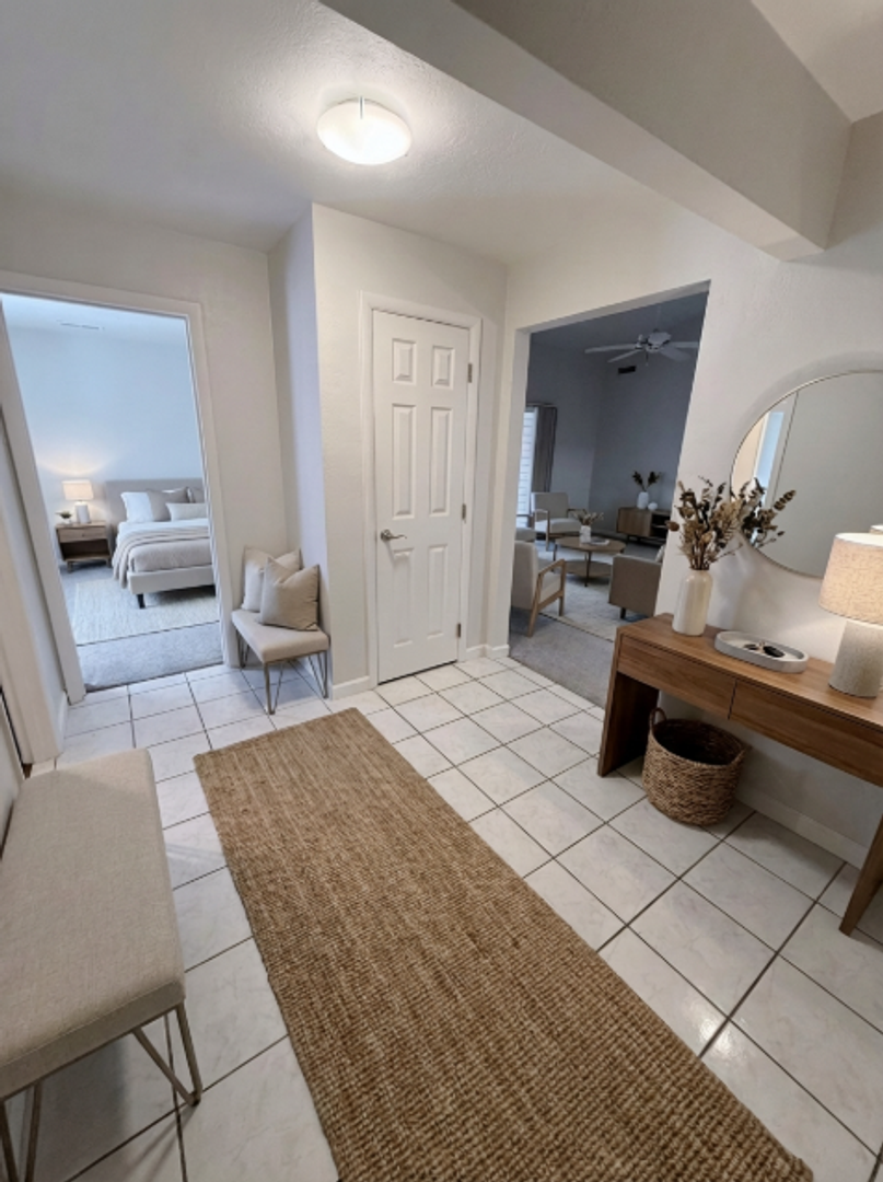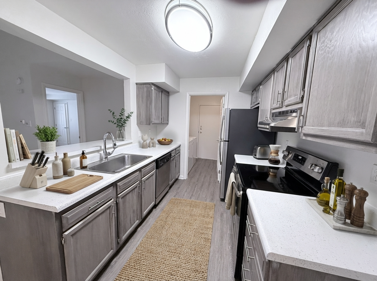 Enjoy a fully equipped kitchen complete with a refrigerator, range, dishwasher, and in-suite washer and dryer — making daily living effortless. Each bedroom offers generous closet space, while two full bathrooms provide privacy and ease for every resident.
