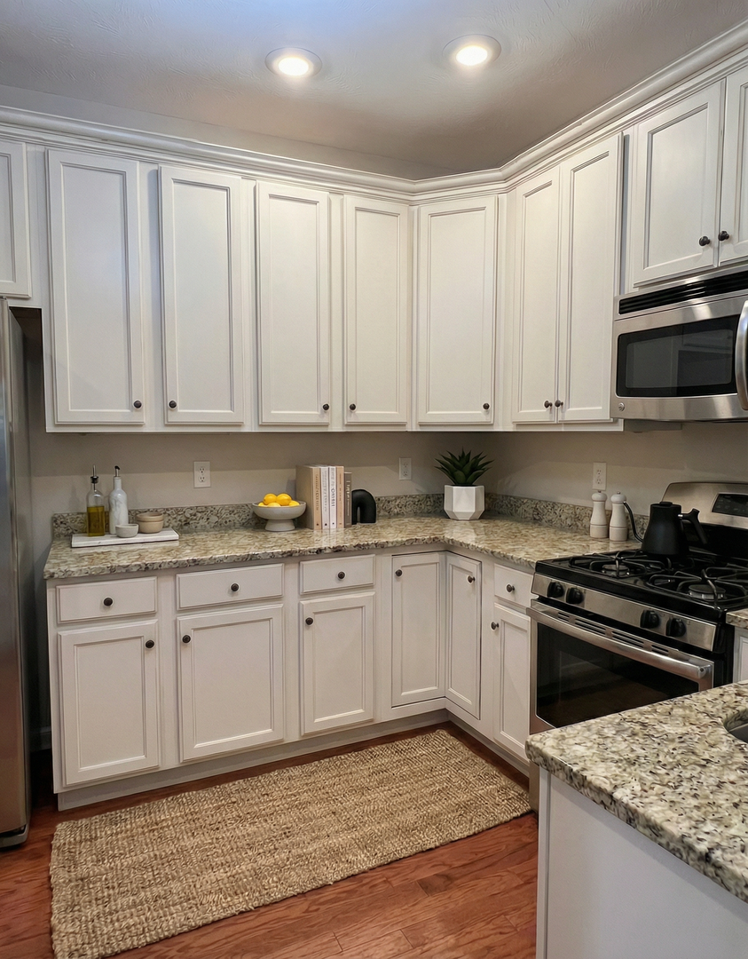 Welcome to our spacious three-bedroom, two-bathroom condo, featuring updated stainless-steel appliances, endless cabinet and granite counter-top space, wood flooring in the main living areas, and a private balcony! Enjoy the convenience of covered parking—and elevator access to your floor.